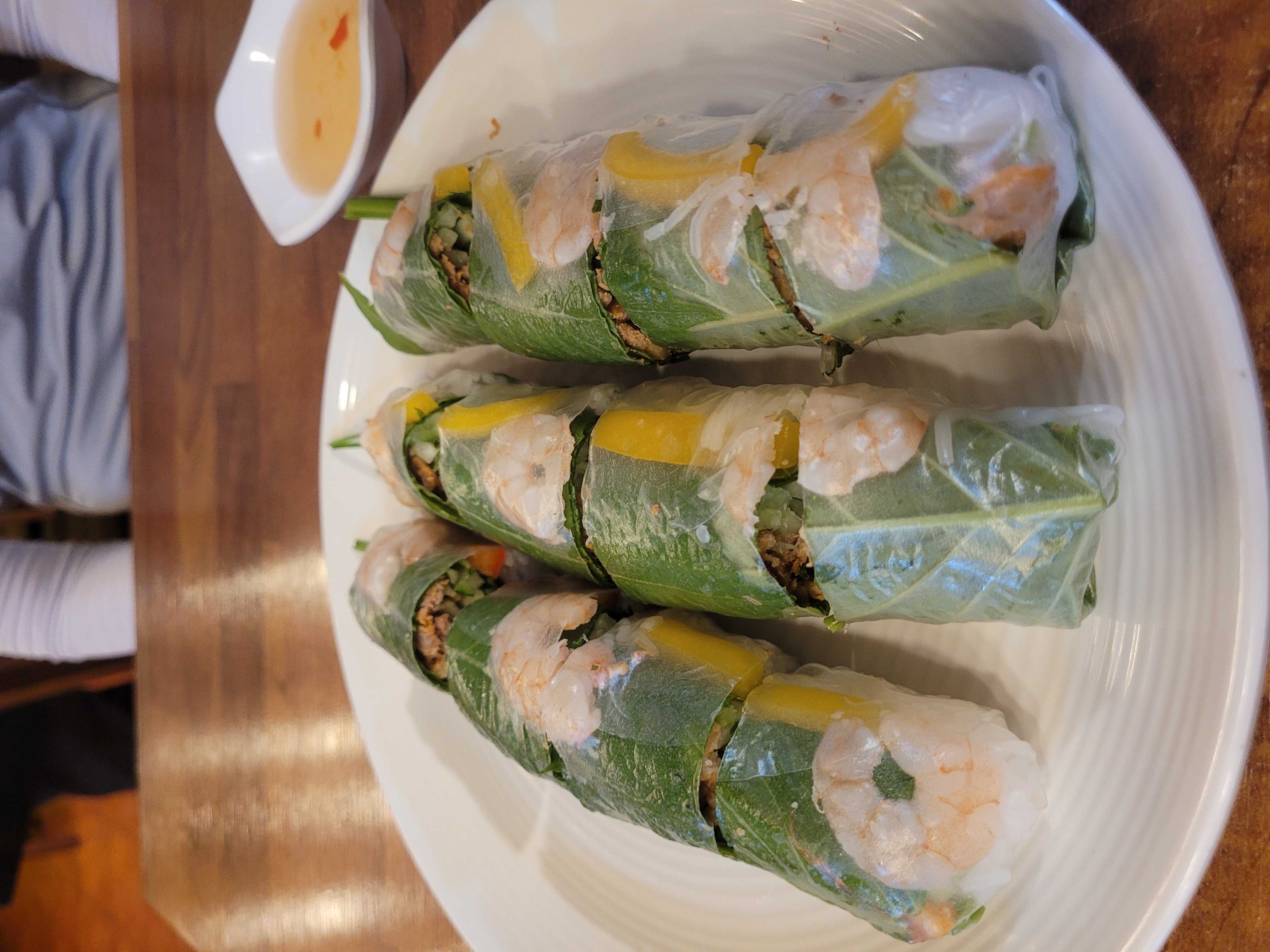 ② 월남쌈 (9,000원) 와이프의 픽이었던 월남쌈! 라이스페이퍼 안에 신선한 야채와 새우가 꽉 차 있습니다. 고수와 민트 등 향신료가 적절히 들어가 있어 현지의 향긋함을 제대로 느낄 수 있었습니다. 함께 나온 피시소스 베이스의 디핑소스에 콕 찍어 먹으니 감칠맛이 폭발하더군요.