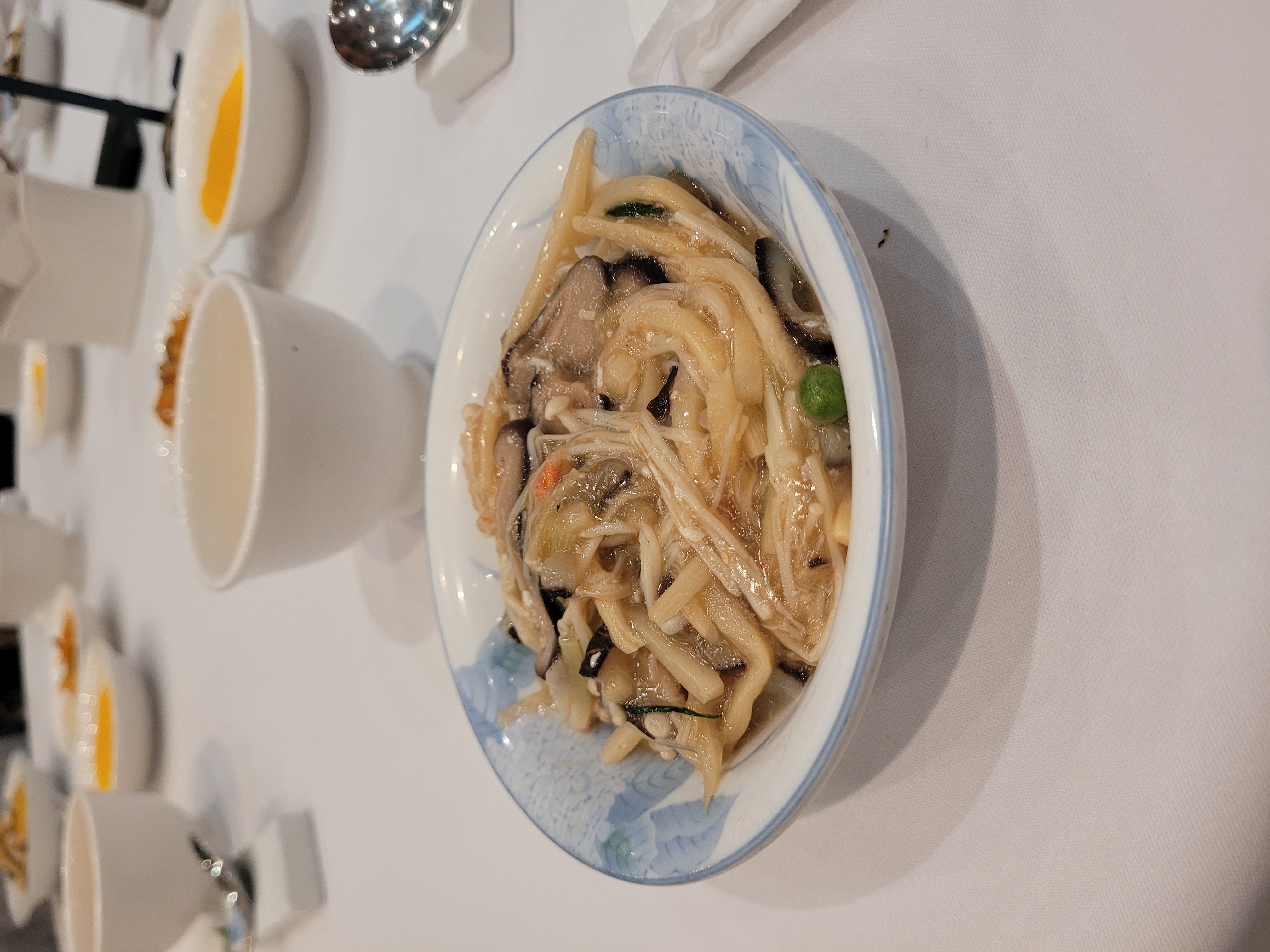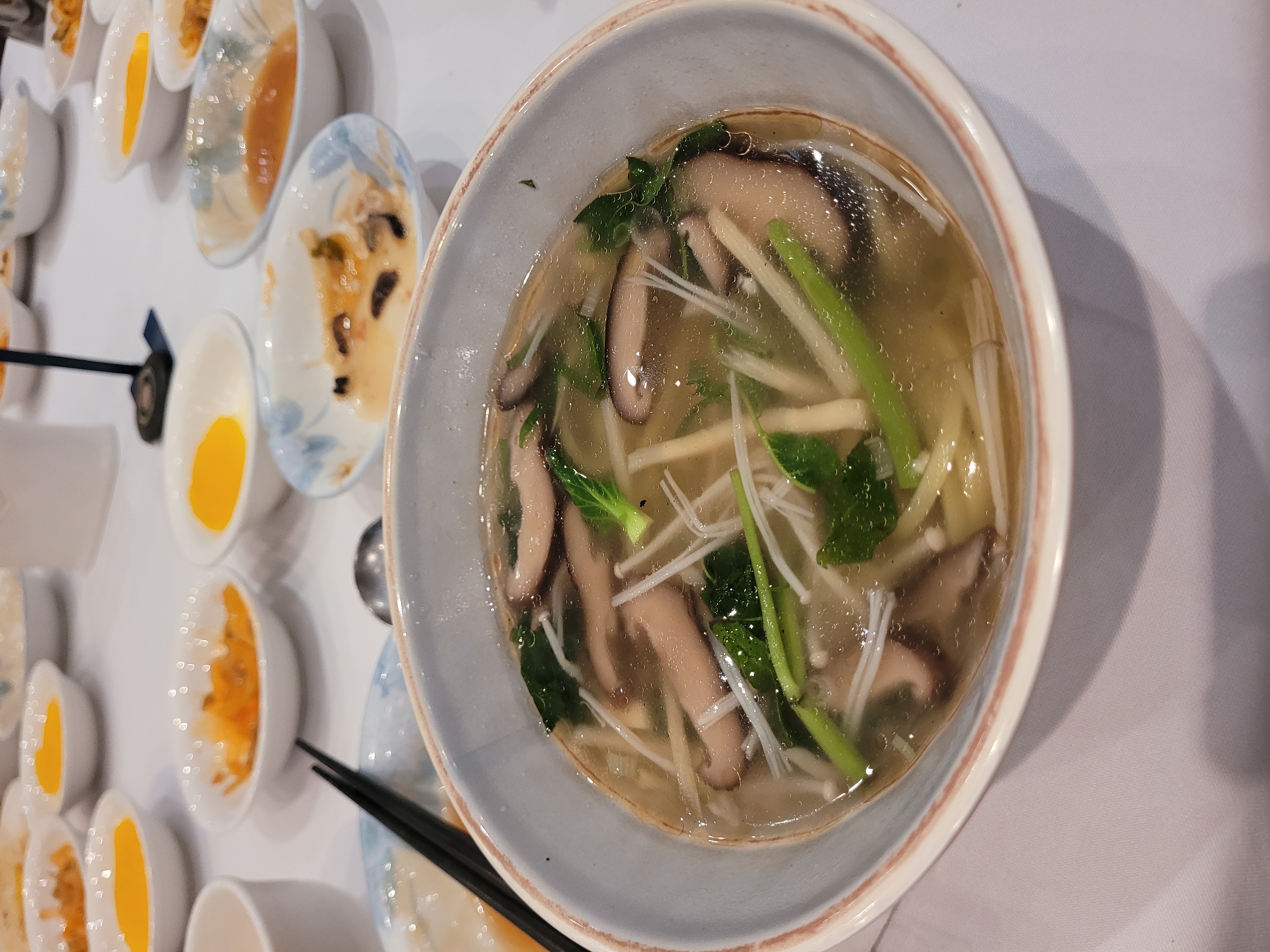 ⑥ 식사 & 후식: 기스면과 디저트 식사는 기스면으로 선택했는데, 닭 육수의 맑고 깊은 국물이 기름진 속을 깔끔하게 씻어주는 느낌이었습니다. 시원한 후식으로 입가심까지 완벽했습니다.