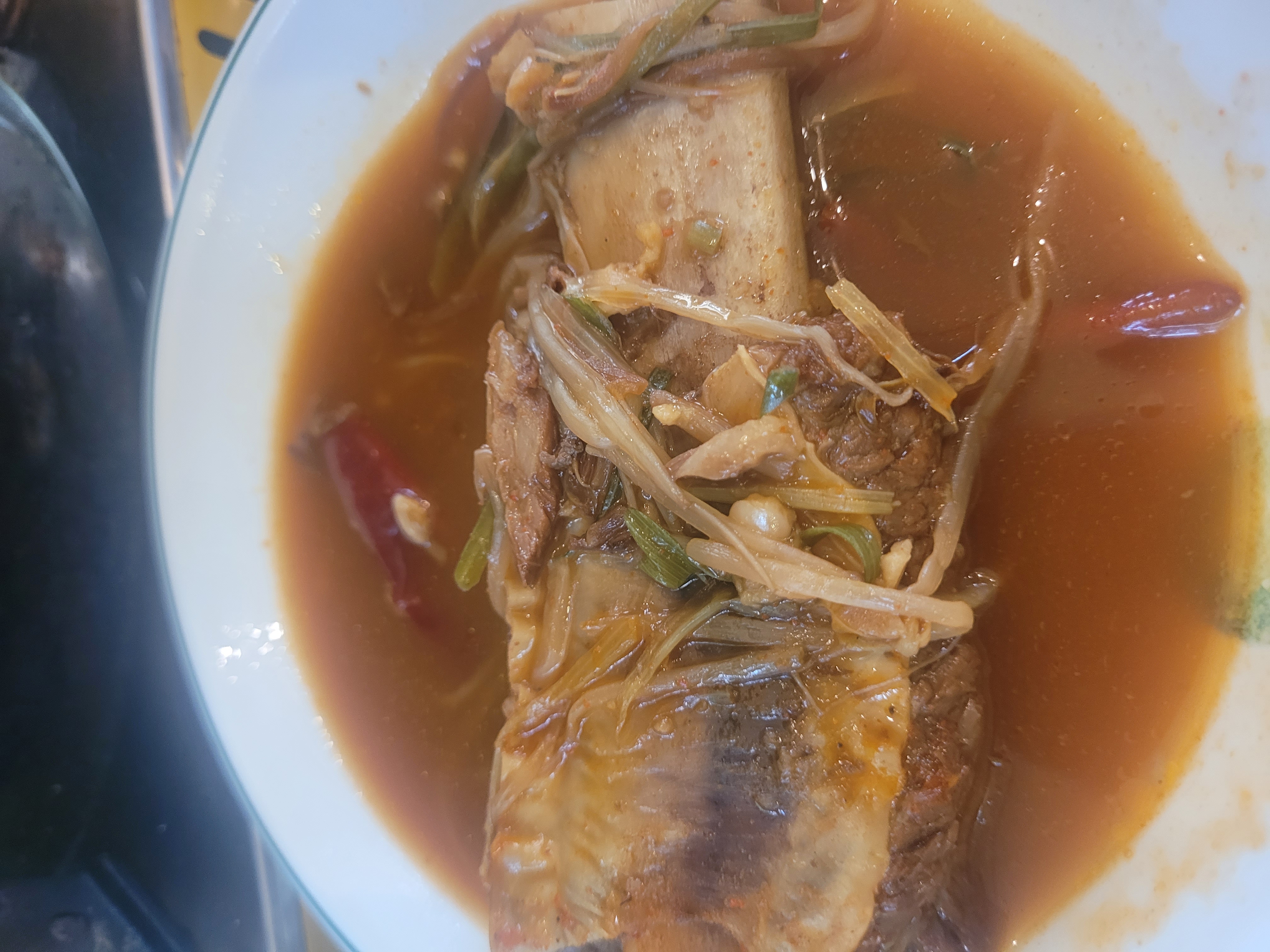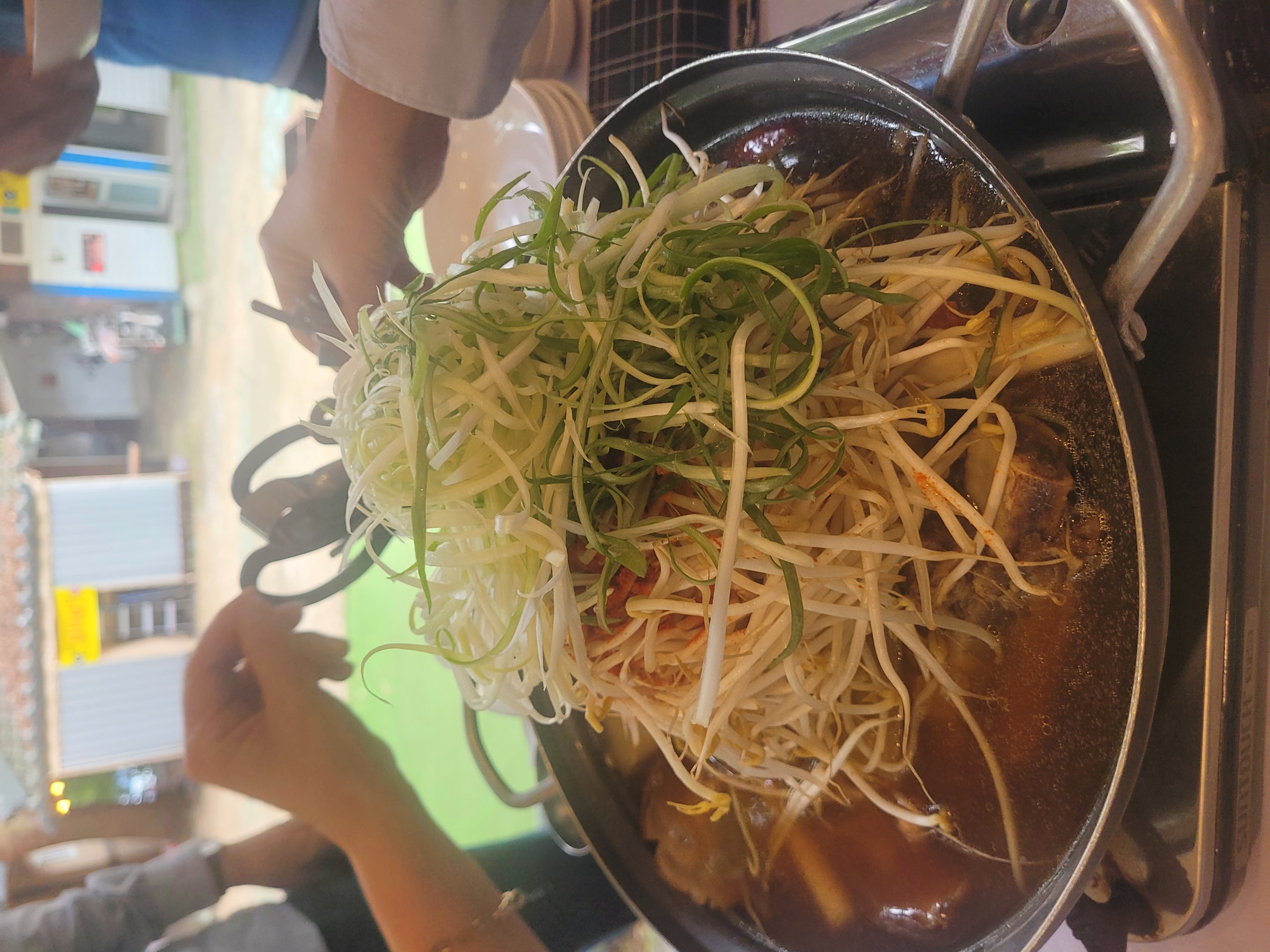 ② 단짠의 정석, 왕갈비찜 백숙만 먹기 아쉬워 주문한 갈비찜은 신의 한 수였습니다. 자극적이지 않고 은은한 단맛과 감칠맛이 어우러진 양념이 갈비 속까지 잘 배어있었습니다. 고기가 어찌나 부드러운지 뼈와 살이 쏙쏙 분리되어 먹기도 편했습니다. 당면과 야채를 건져 먹는 재미도 쏠쏠했고요.