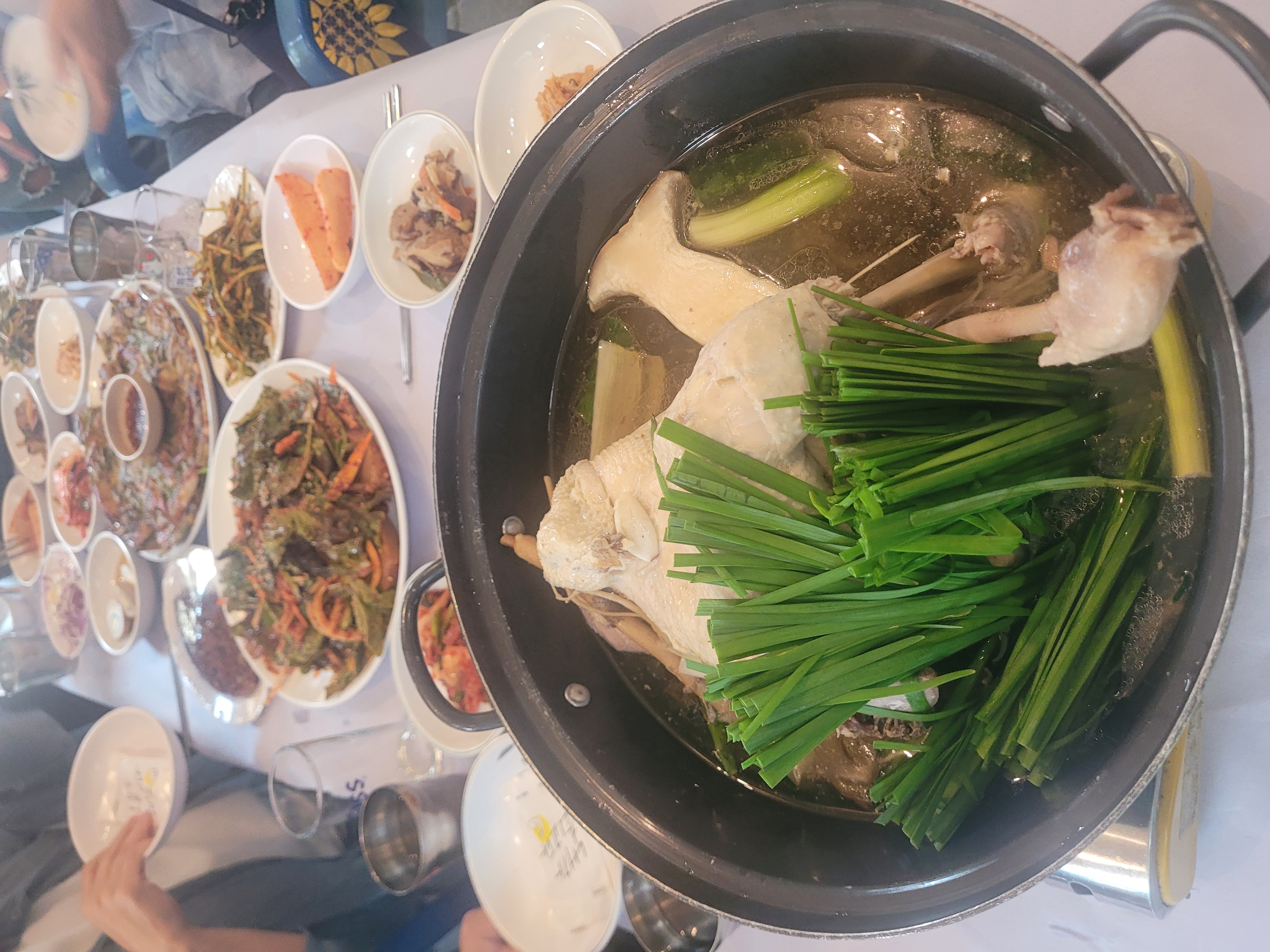 ① 보약 같은 국물, 한방닭백숙 커다란 토종닭이 푹 삶아져 나온 백숙은 비주얼부터 압도적이었습니다. 능이버섯, 인삼, 대추, 황기 등 각종 한약재가 들어가 국물이 진한 황금빛을 띠고 있었죠. 토종닭임에도 전혀 질기지 않고 젓가락만 대도 살이 발라질 정도로 부드러웠습니다. 무엇보다 진한 국물을 한 모금 마시니 온몸이 따뜻해지는 기분! 마무리는 역시 찹쌀 죽이죠. 진국 육수를 머금은 죽은 배가 불러도 계속 들어가는 마성의 맛이었습니다.