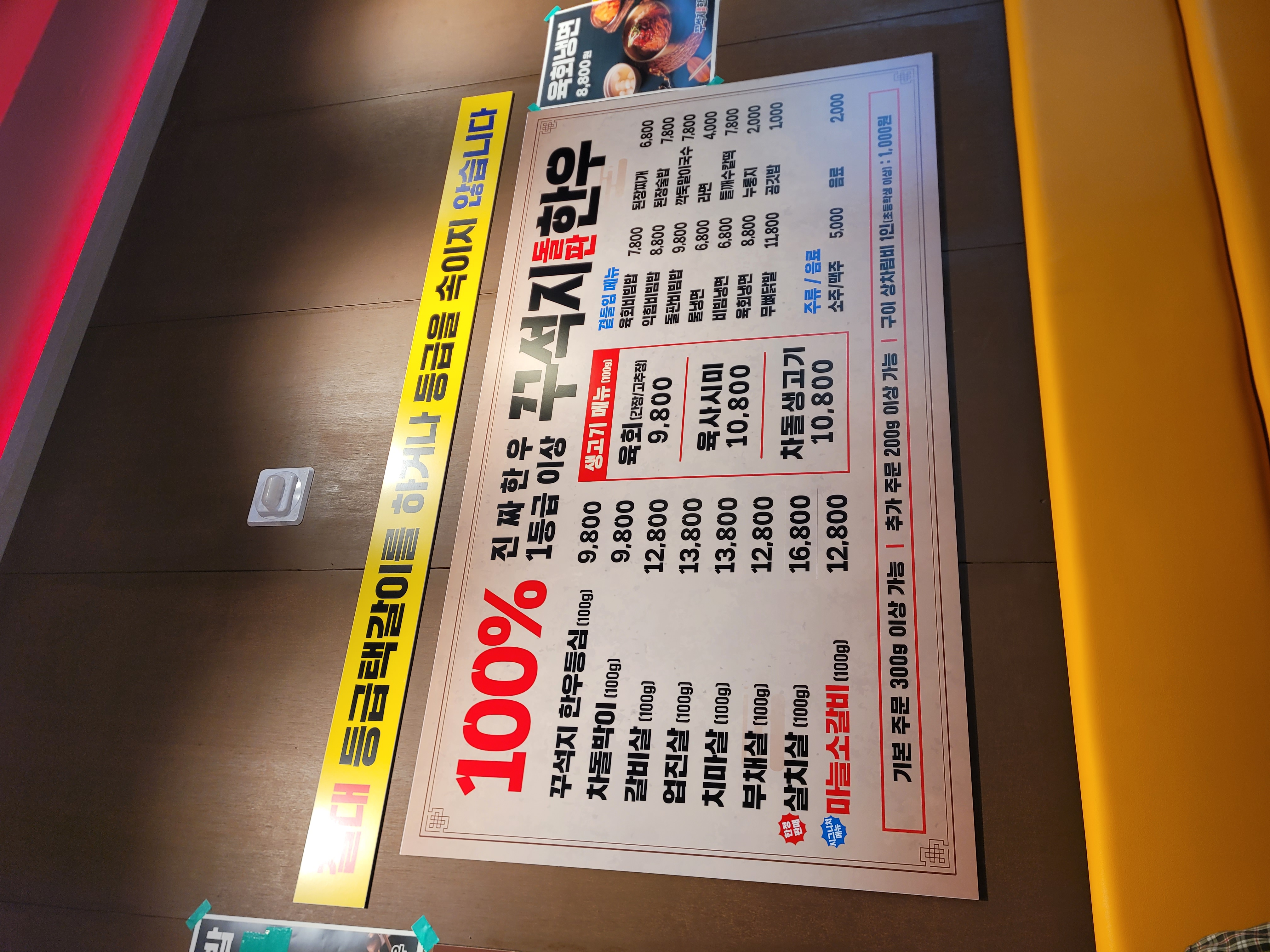 매장에 들어서니 이미 절반 정도 테이블이 차 있었습니다. 깔끔하고 넓은 실내, 테이블 간격도 널찍해서 가족 외식이나 회식 장소로 딱이라는 생각이 들더군요. 고기 냄새가 심하게 배지 않는 쾌적한 환기 시스템도 마음에 들었습니다.
